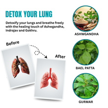 Herbs like Neem, Karela, and Gokhru promote liver detoxification, while Gokhru and Jambu Powder support kidney health by flushing out toxins. Additionally, Bel Patra and Nagarmoth help detoxify the lungs, improving respiratory health.